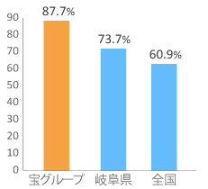 宝グループ持家率87.7%(2019年4月現在正社員対象)、岐阜県は74.5%、全国は61.7%です。
